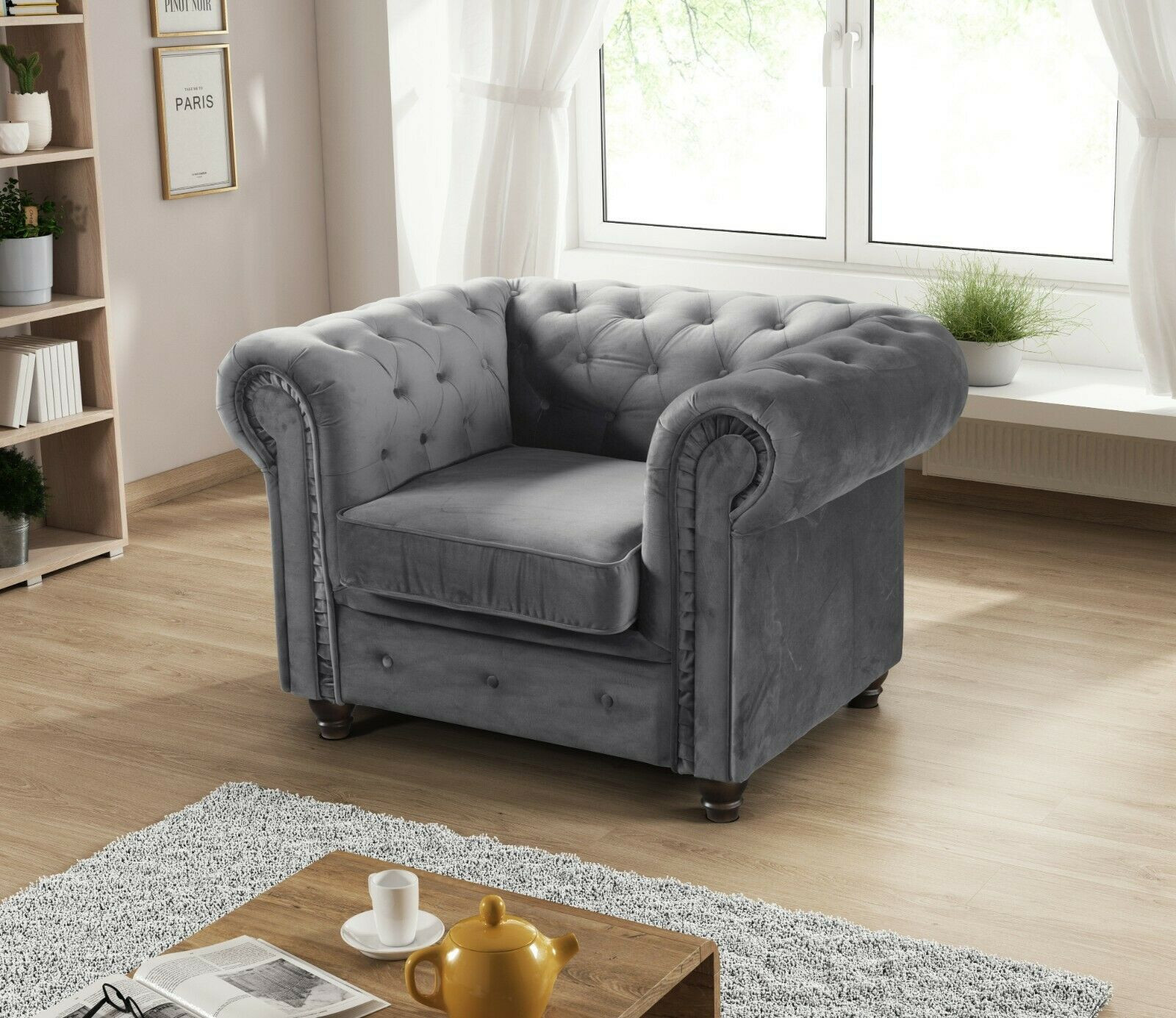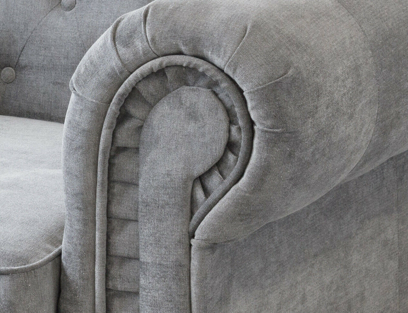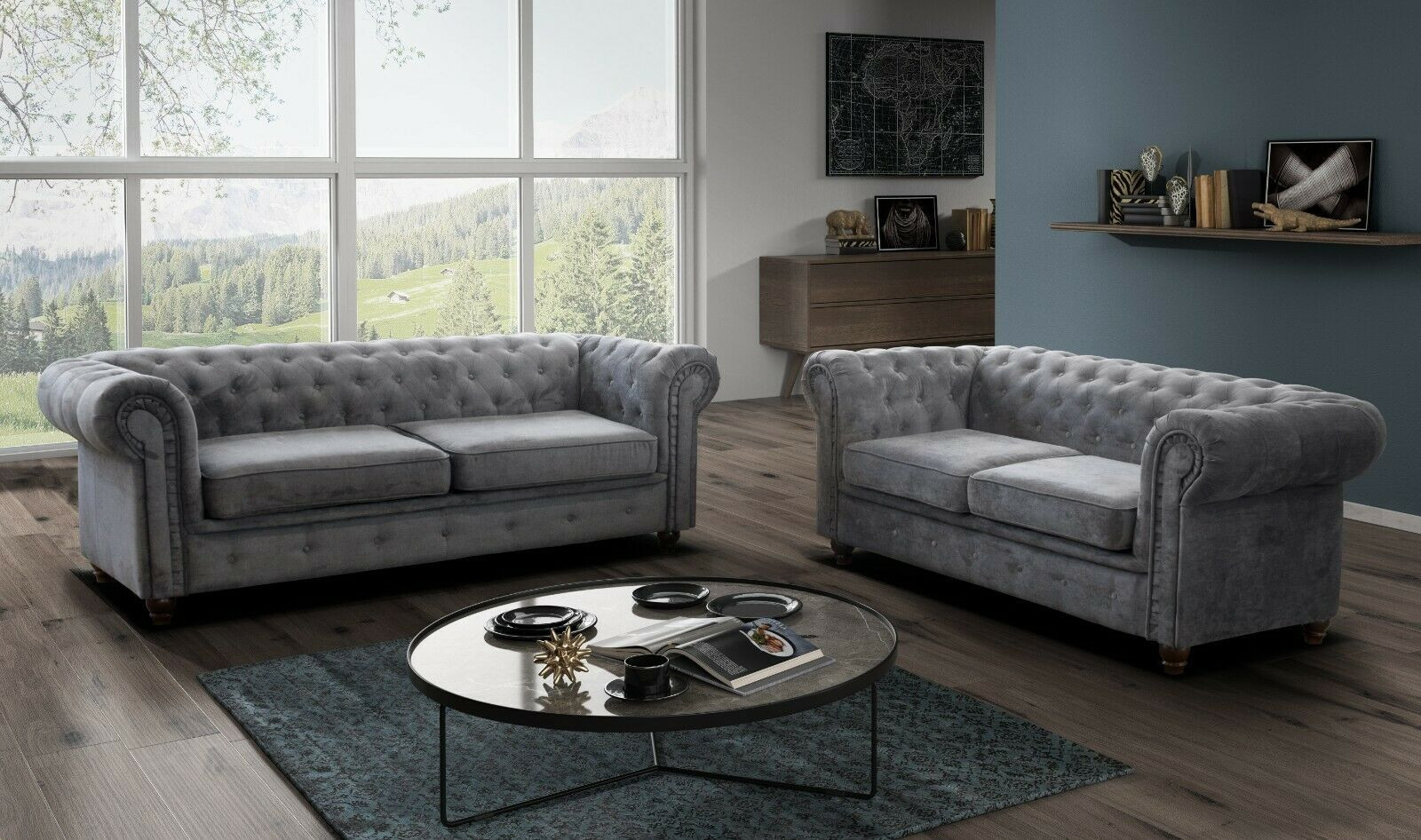Gaba Chesterfield-Sofagarnitur 3 + 2 Plüsch Samt Dunkelgrau